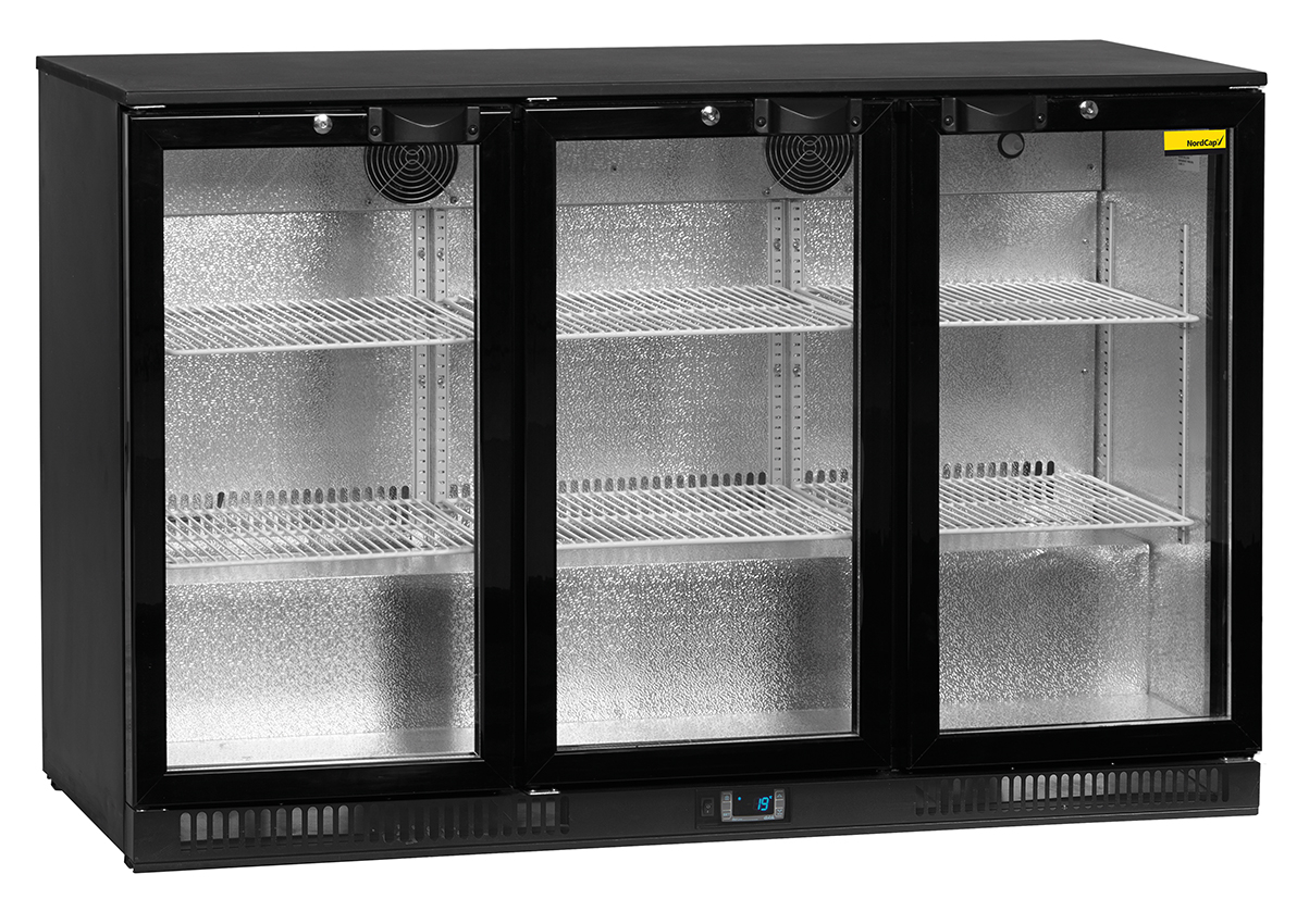 Zwart gelakte achterbuffetkast voor onderbouw. 3 dubbelglas-draaideuren, LED-verlichting, 6 draadroosters, thermostaat met 6 koelniveaus, automatische ontdooiing en dooiwaterverdamping, vier stelvoetjes, koudemiddel R290 dus goed voor het milieu, +2 tot +10 graden bij een OT van 30 graden, klimaatcategorie 4, energielabel C, energieverbruik van 1750 kWh/jaar, gewicht van 97 kg. Afmetingen: 900 x 520 x 870 mm. (BxDxH) Uitpakken en plaatsen tegen meerprijs mogelijk. Gratis thuisbezorgd